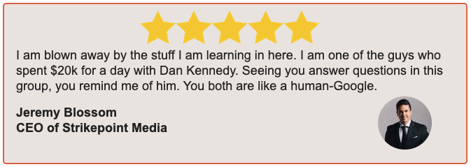 I've been running paid ads for 20 years now and have spent as much as $65,000 per day. My clients include Russell Brunson, Dan Kennedy (GKIC), Ryan Deiss, Agora, LendingTree, Disney Book Club, Snuggie, and many many others.